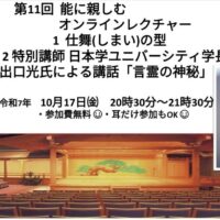 第11回能に親しむオンラインレクチャー 1 仕舞(しまい)の型 2 特別講師 日本学ユニバーシティ学長 出口光氏による講話「言霊の神秘」