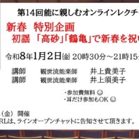 第14回能に親しむオンラインレクチャー 新春 特別企画 初謡 「高砂」「鶴亀」で新春を祝いましょう!