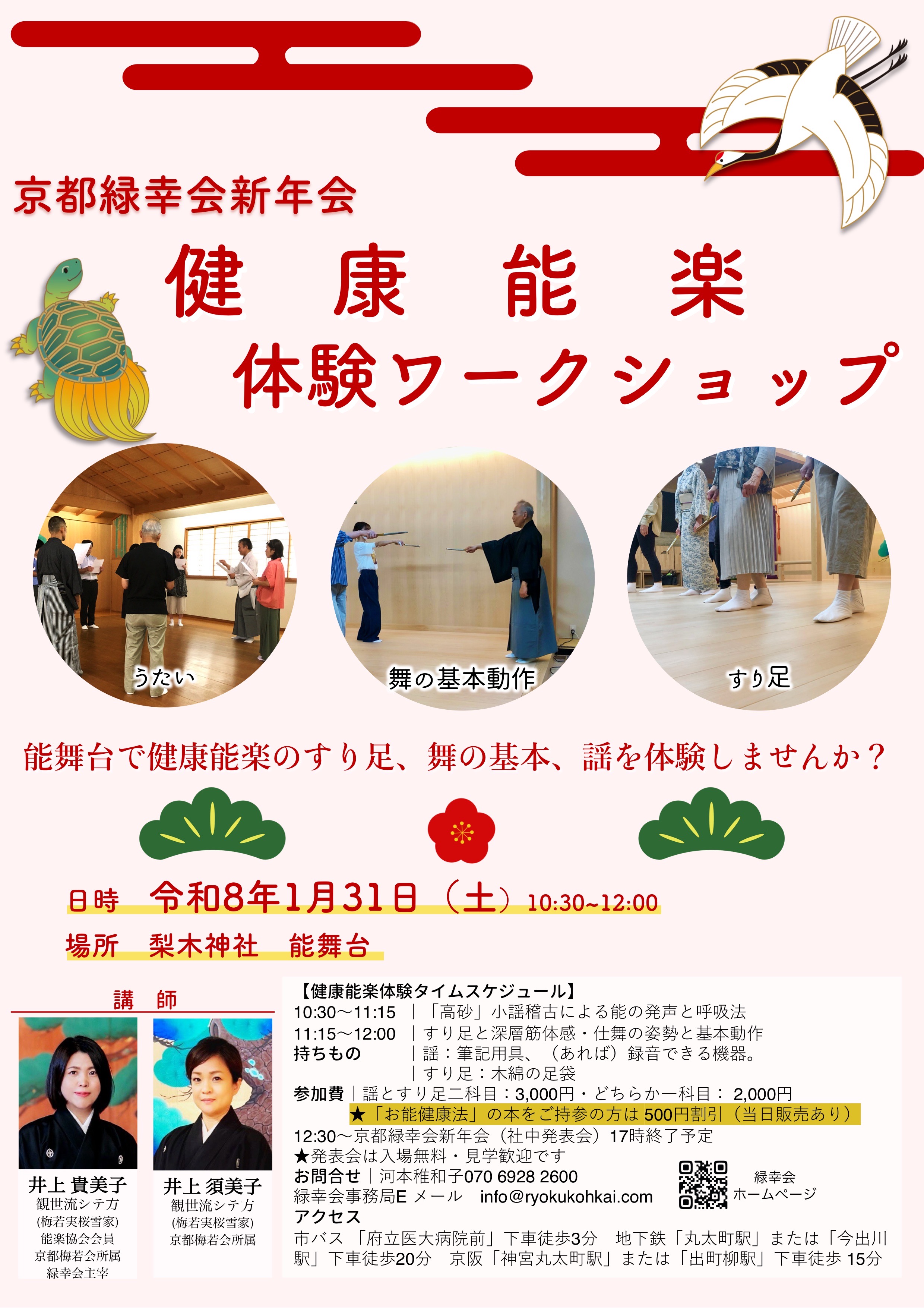 令和8年1月31日(土)に京都・梨木神社舞台にて京都緑幸会新年体験ワークショップと発表会が催されます。