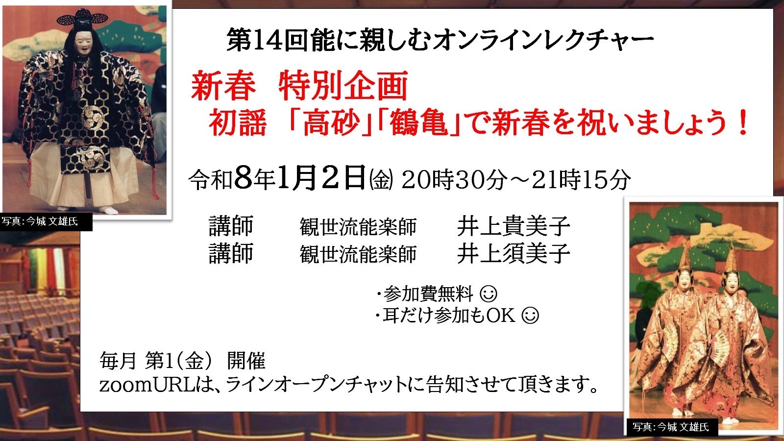 1月2日の新春企画として初謡「高砂」「鶴亀」を謡います。
